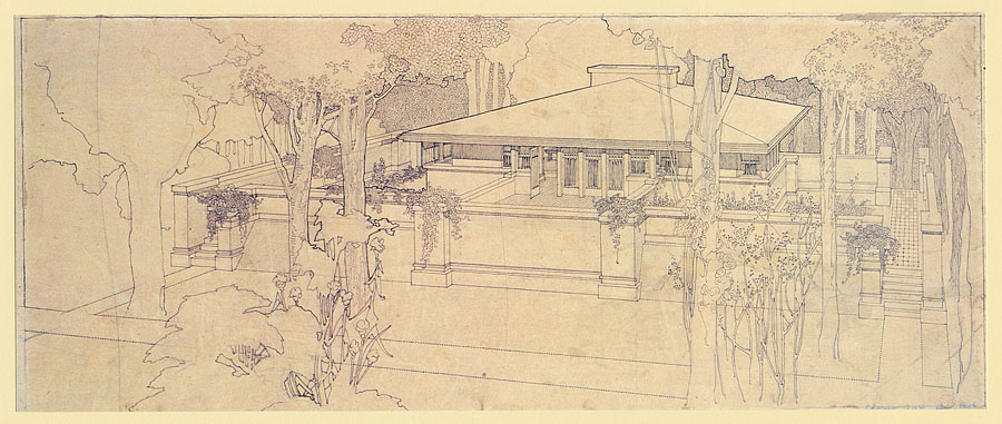 Райт был основателем "Prairie School", стиля, который представляет собой комбинацию японской архитектуры и среднезападных традиций США. Его дома, построенные в этом стиле, характеризуются простыми формами, низкой планировкой, широкими крыльями и выступающими крышами.