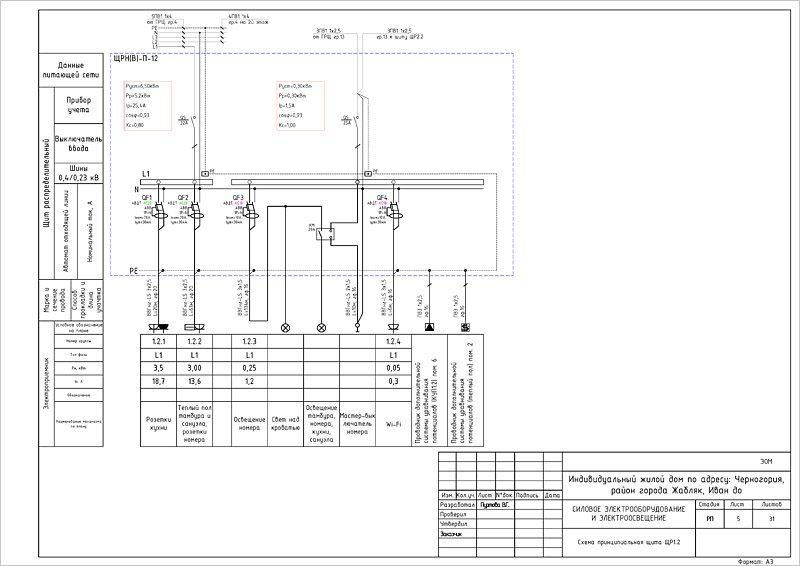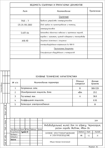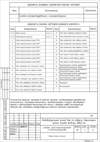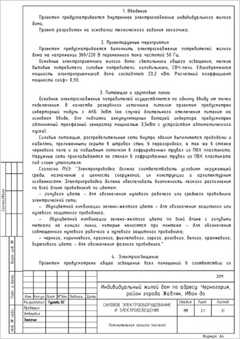 Ниже приводим список, что включает в себя проект электрооборудования.