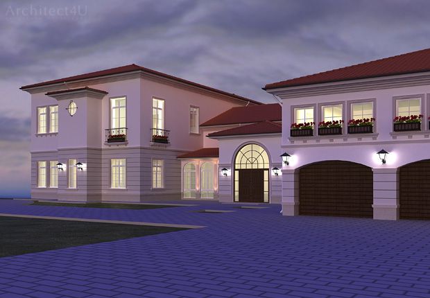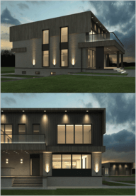 - фотореалистичная вечерняя визуализация дома со всех ракурсов