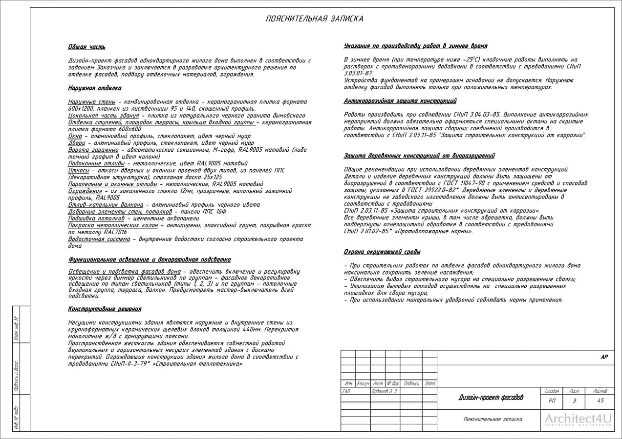 - проект необходимый для закупки фасадных материалов и выполнения строительно-отделочных работ, который содержит все необходимые чертежи и расчеты