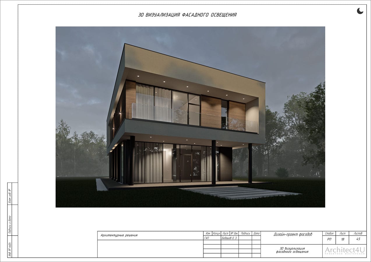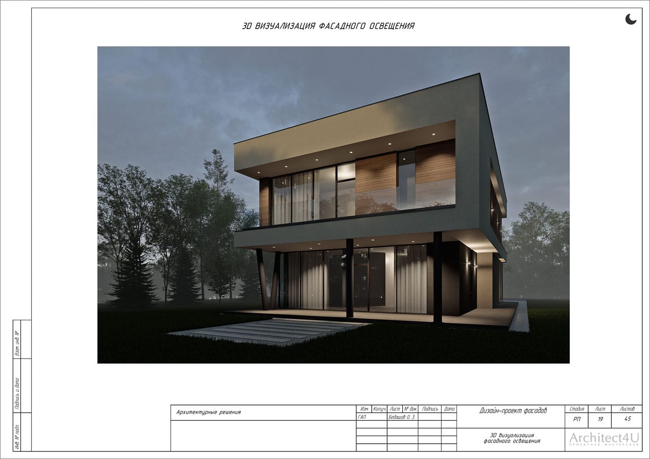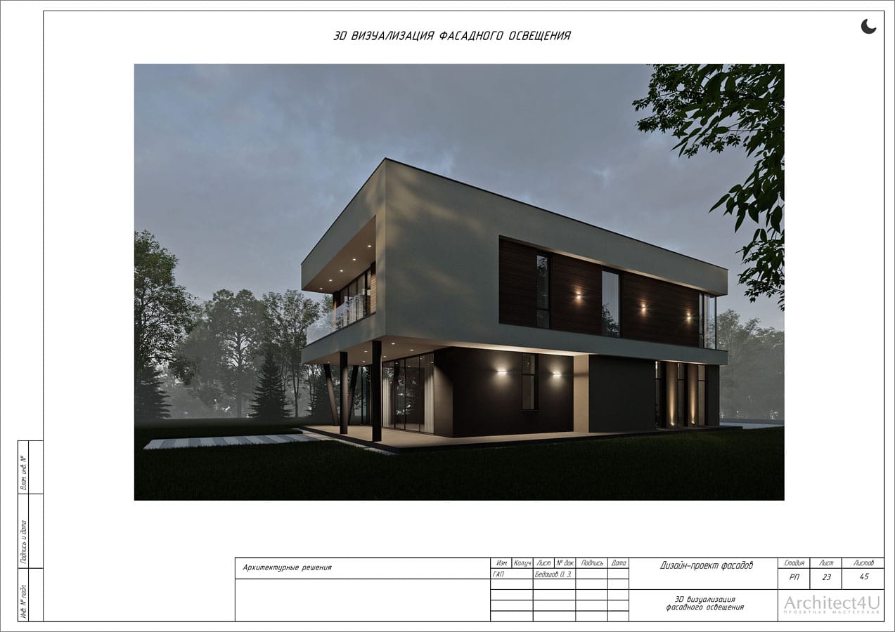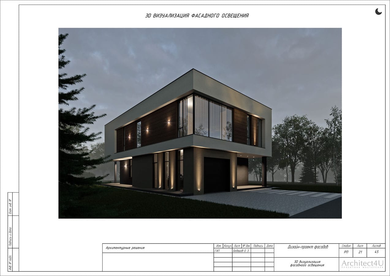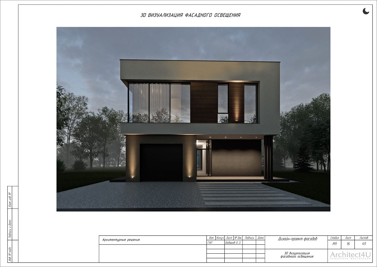 Рабочий проект фасадов дома с подсветкой
