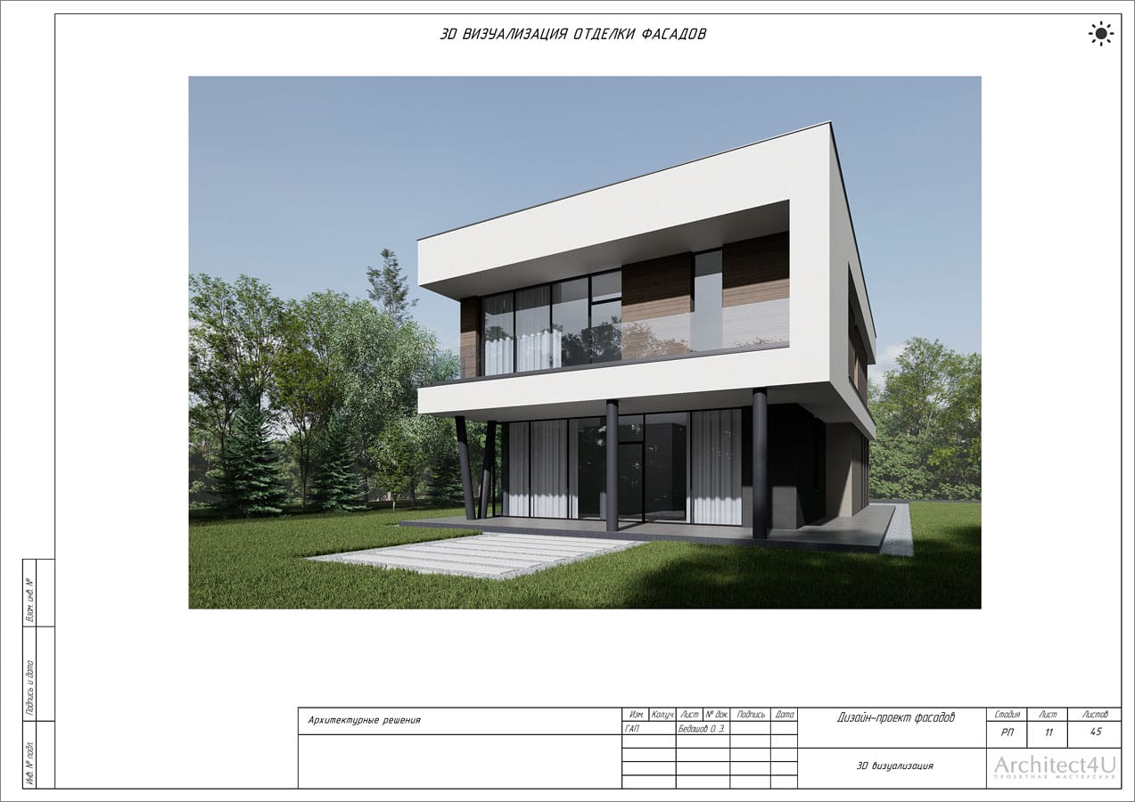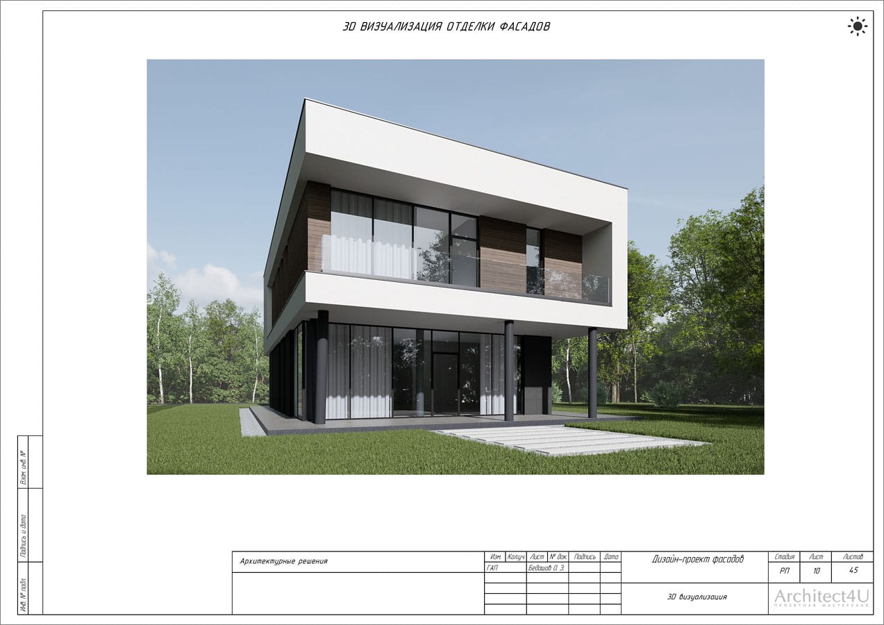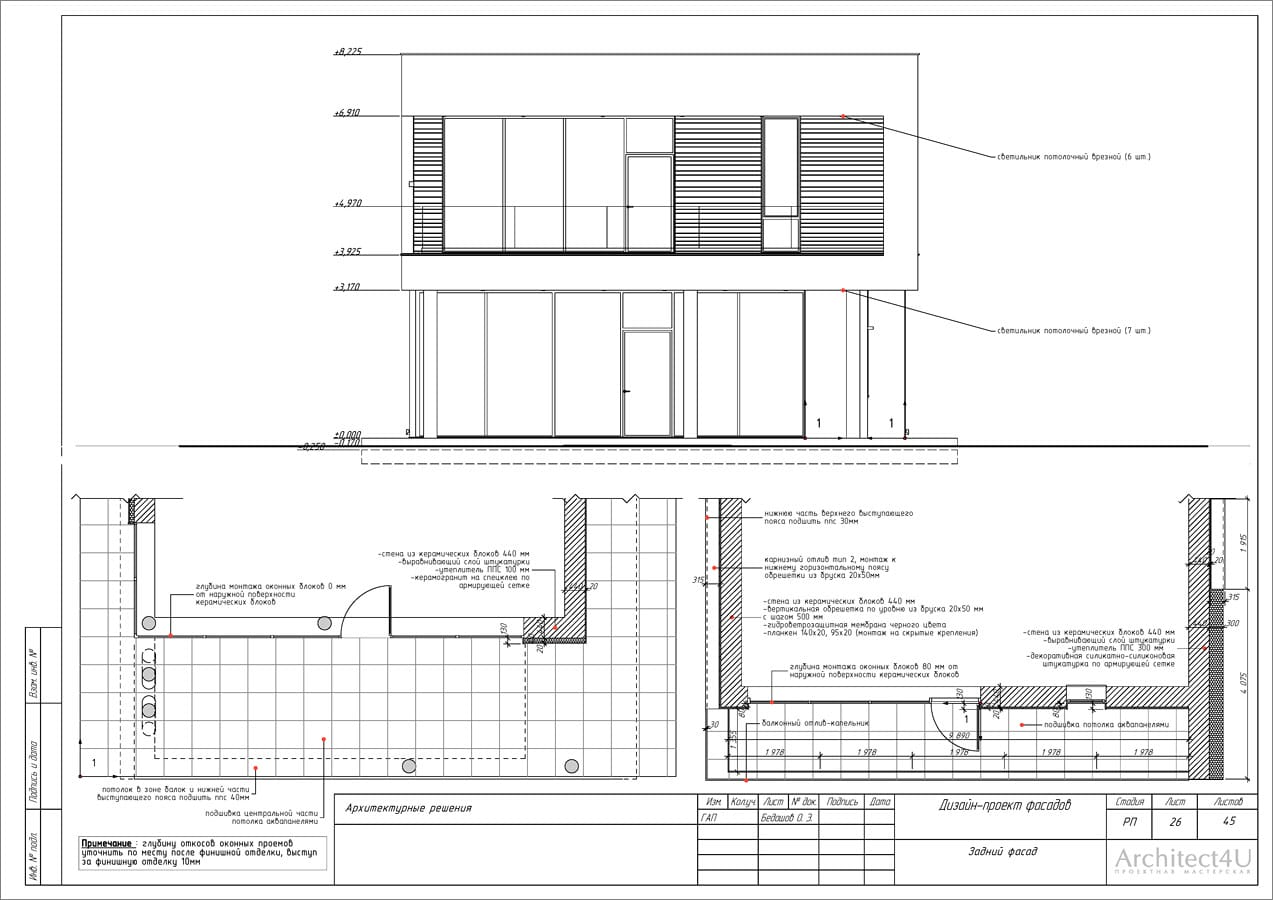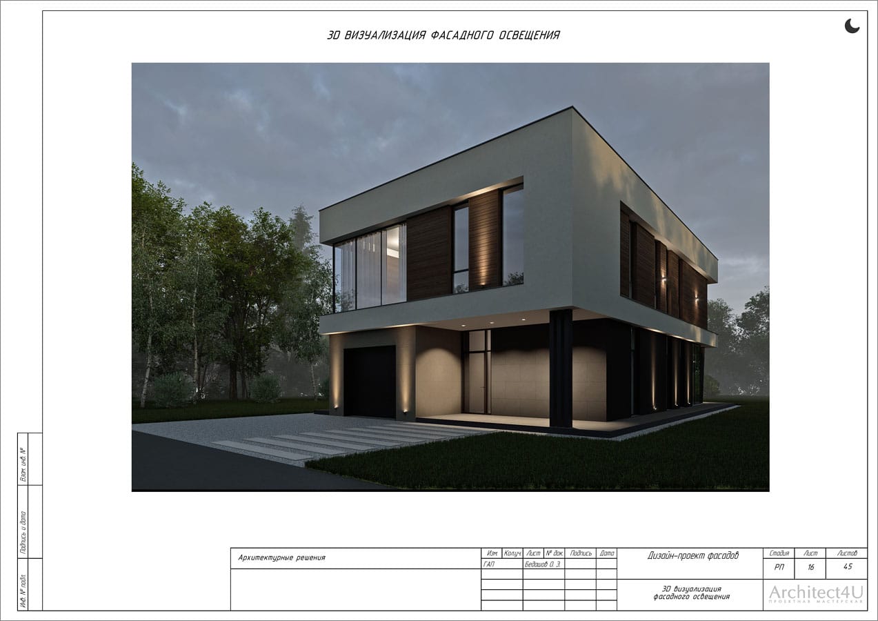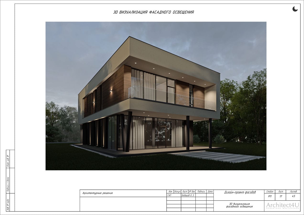 Рабочий проект фасадов дома с подсветкой