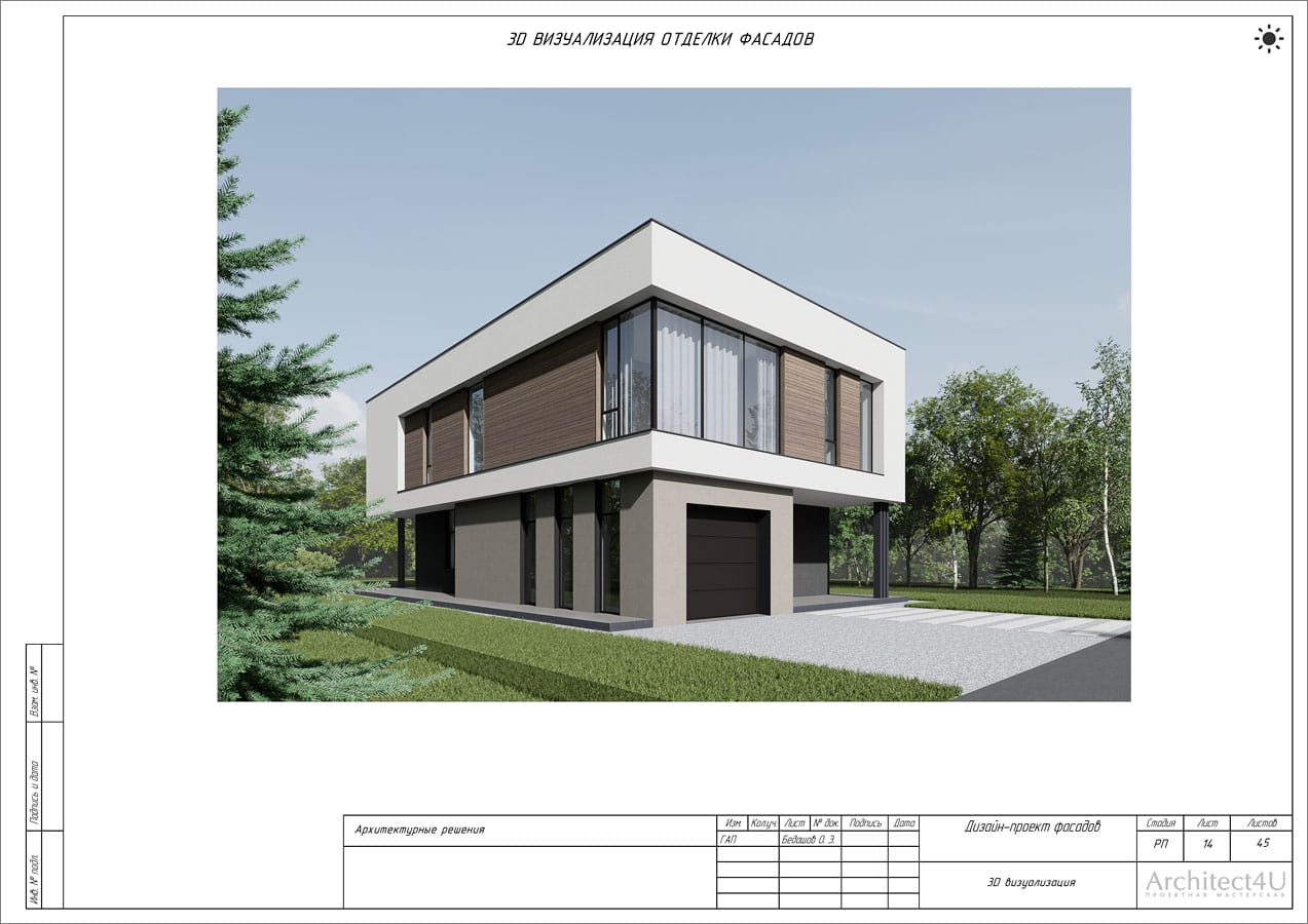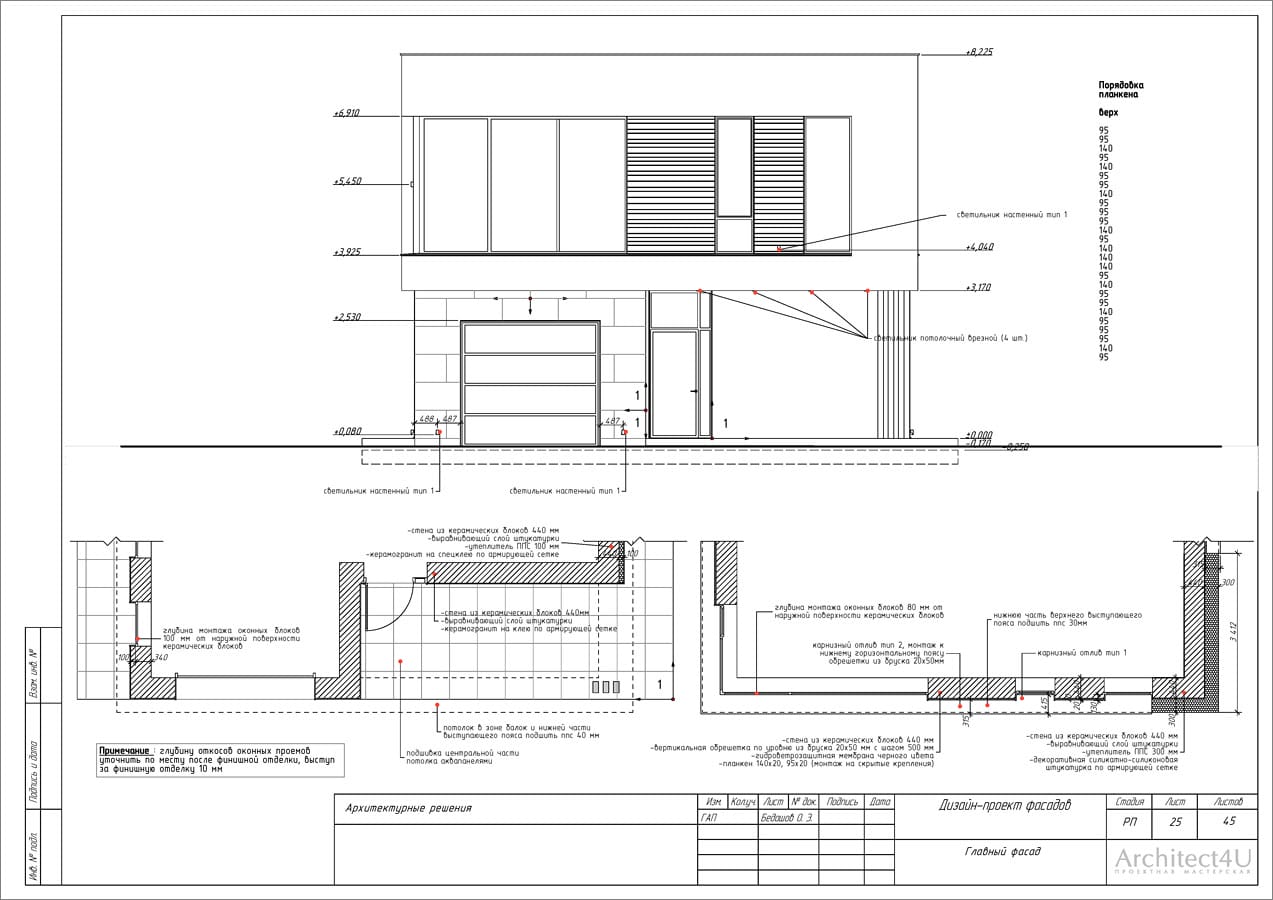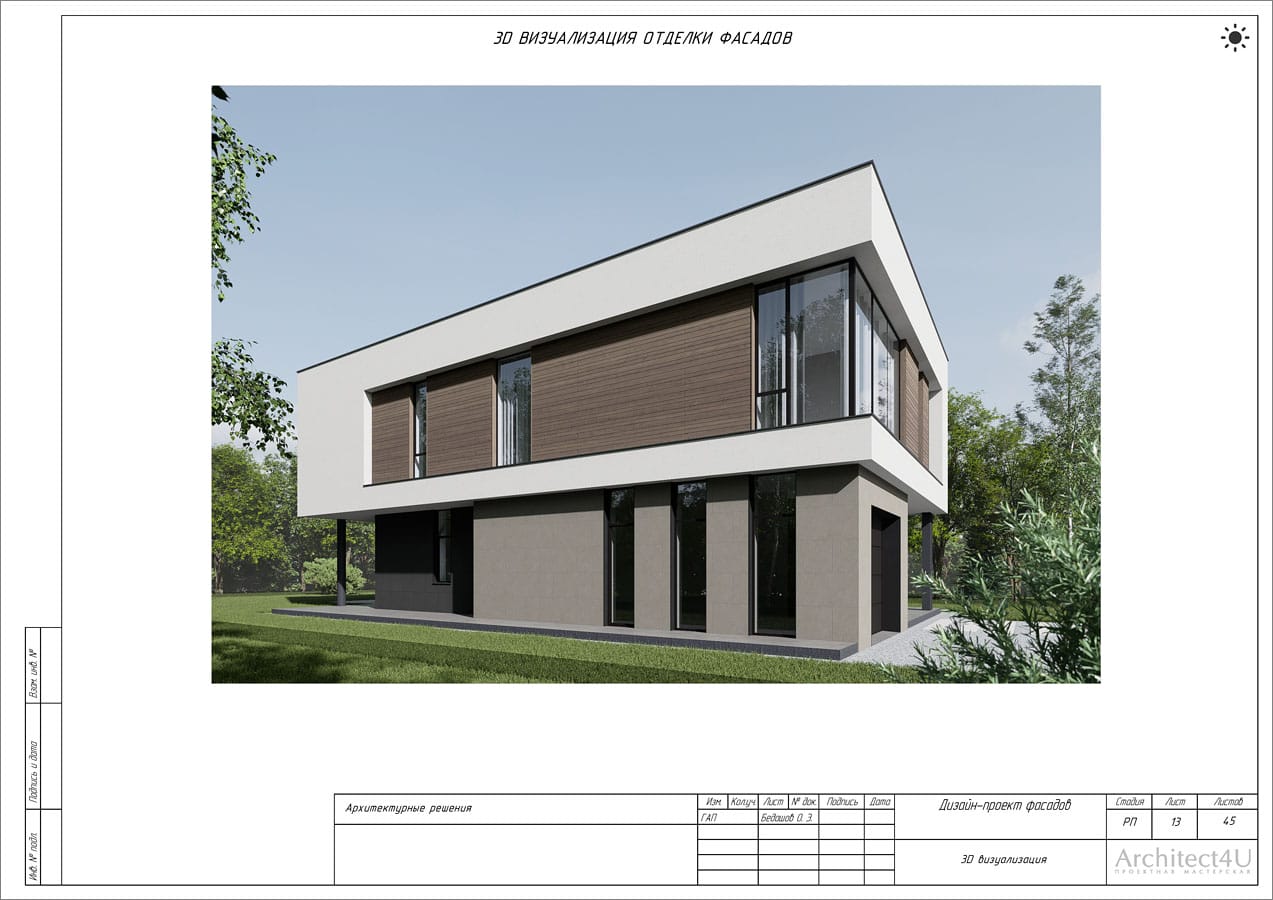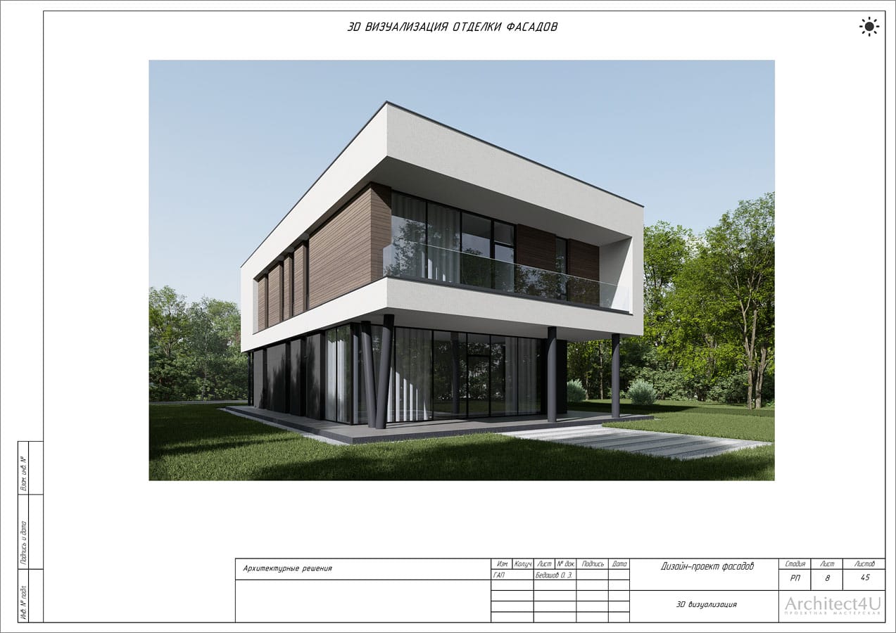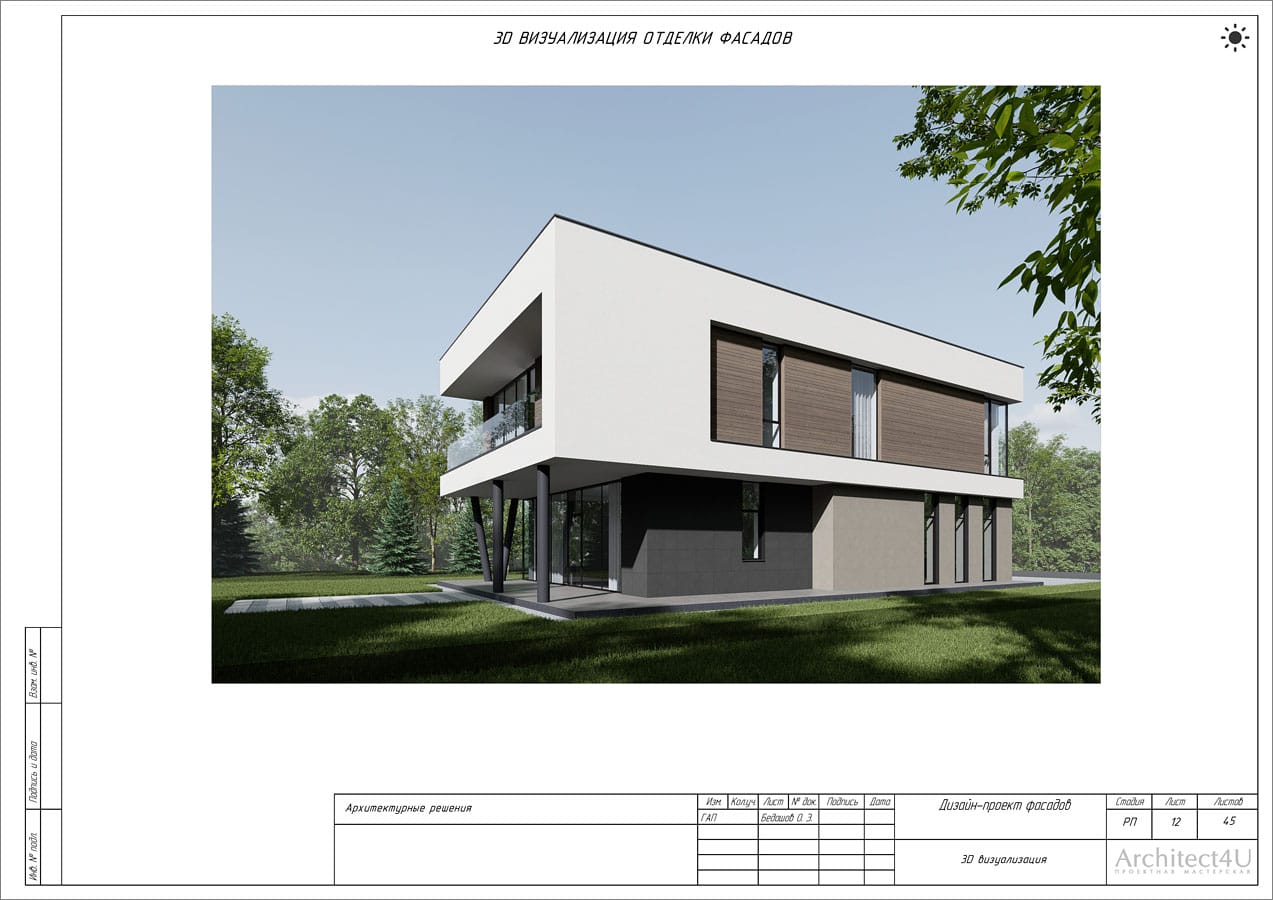 Рабочий проект фасадов дома с подсветкой