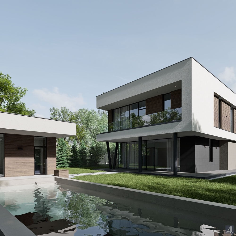 - фотореалистичная дневная визуализация дома со всех ракурсов