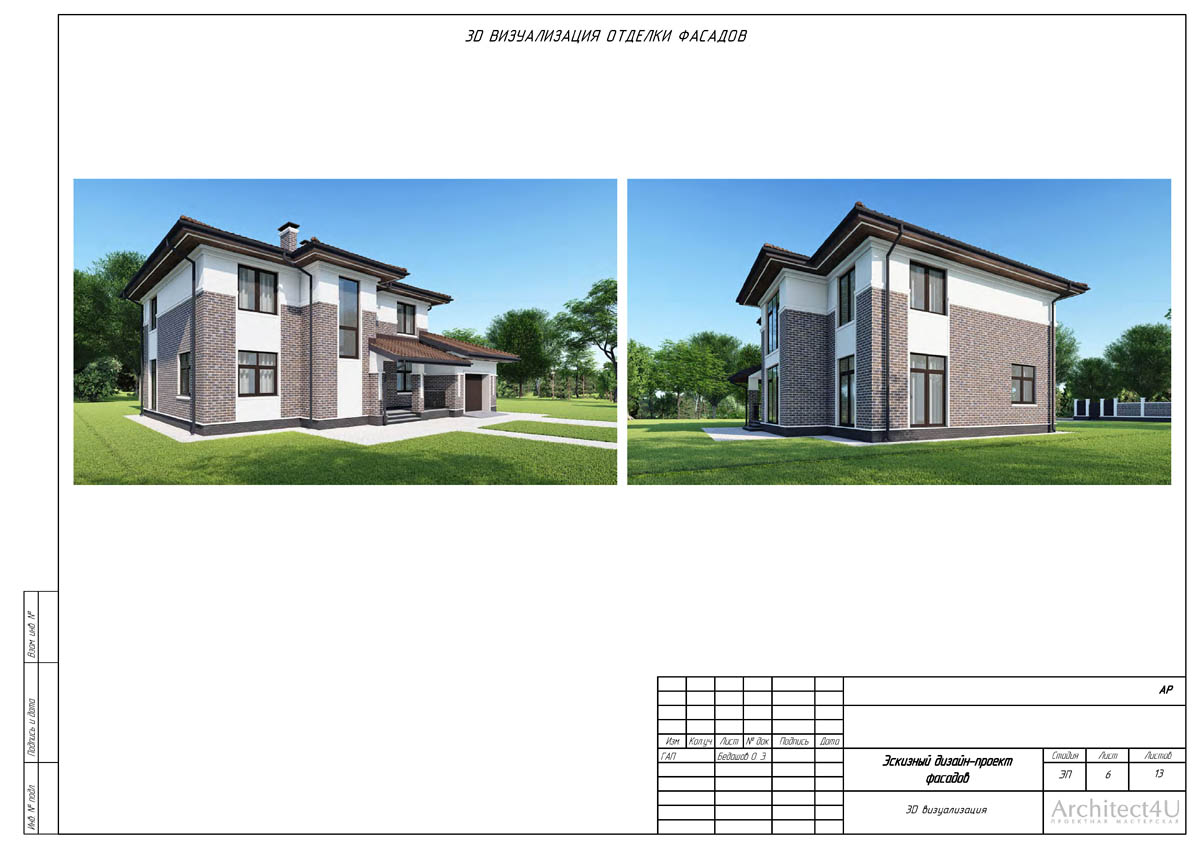 Благодаря вариантной проработке архитектурных эскизов помогает найти лучшее решение дизайна и увидеть дом с новыми фасадами еще до начала строительных работ.