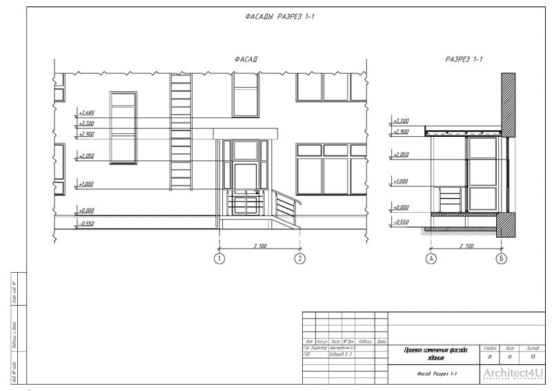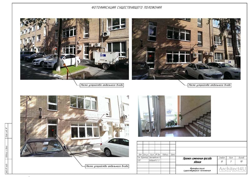 Ознакомиться с составом проекта реконструкции (проектом устройства отдельного входа) или по другому - дизайн-проектом входной группы, Вы можете далее. Проектная документация состоит из двух частей - архитектурные решения, включающие предпроектные эскизные разработки концепции реконструкции входной группы, либо устройства нового входа, и конструктивные решения, содержащие рабочие чертежи, необходимые для выполнения строительных работ. В качестве примера мы приводим проект устройства отдельного входа в административном здании в Москве на улице Делегатская.