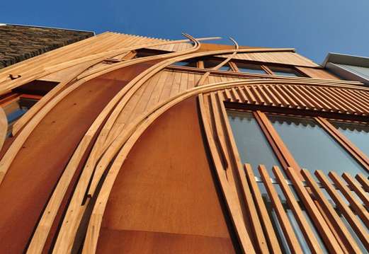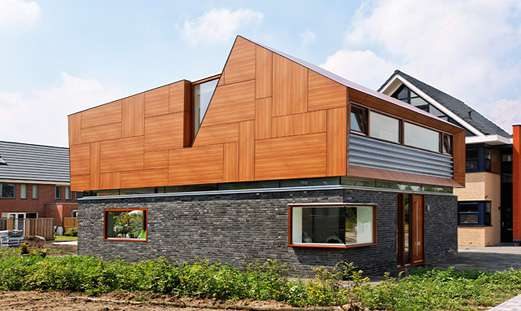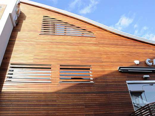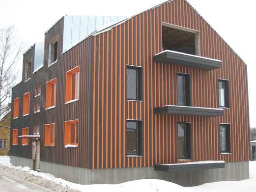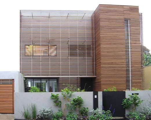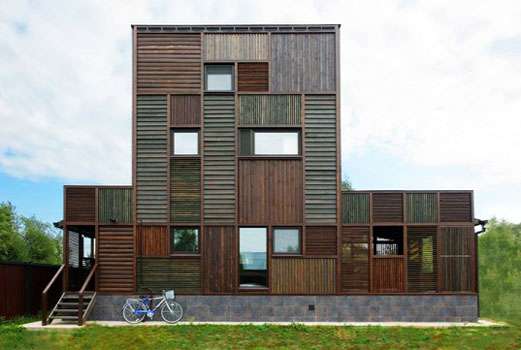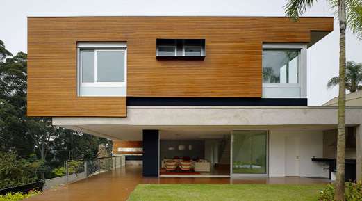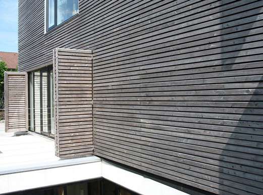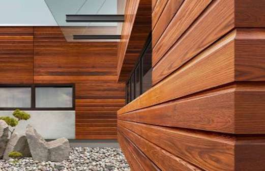При отделке фасадов натуральное дерево может применяться в виде различных материалов, такие как - планкен (фасадная доска), сайдинг из натурального дерева, блок-хаус, имитация бруса, вагонка, деревянные фасадные панели. Также на рынке представлено много различных вариантов композитных материалов, имитирующих отделку деревом - металлические панели с текстурой дерева, виниловый сайдинг, панели из древесно-стружечных материалов, панели типа "сэндвич", фиброцементные панели, декинг (композитная террасная доска) и др.