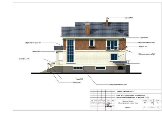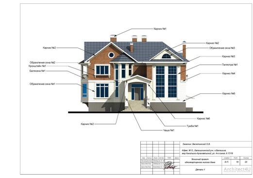 В распоряжение архитекторов нашей проектной мастерской достался недостроенный коттедж в подмосковной Балашихе. За время владения домом, у хозяина сформировались определенные желания по требуемому составу помещений и их приблизительным площадям, что касается внешнего вида загородного дома, то существуещее положение устраивало отчасти, требовалась реконструкция. Предполагалось расширить дом, и тем самым добавив требуемые помещения, путем строительства пристройки с правой стороны. В ходе работы над этим проектом были предложены различные объемно-планировочные решения перепланировки как существующей части дома, так и планировки пристраиваемой, включающие в себя также вариантную проработку декора и отделки фасадов загородного дома.На данной странице представлен итог нашей кропотливой работы.