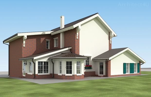 Создать гармоничное и законченное решение фасадов дома в английском стиле, сохранив существующую отделку клинкером, кровельное покрытие, окна. Реконструировать входную группу, организовав отдельный вход в подвальный этаж. Разработать решение пристройки веранды (летней кухни) с отдельным выходом из левой части дома. В качестве второго варианта по желанию заказчика был разработан проект с увеличением общей площади дома за счет пристройки помещения гостиной со стороны левого фасада.