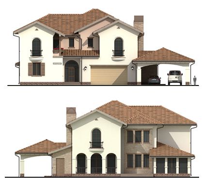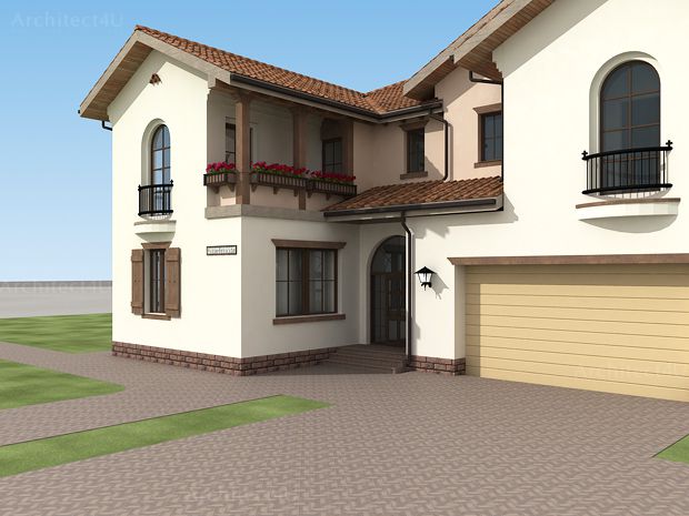 | Отделка фасадов | Цоколь - искусственный камень. Стены фасадов - штукатурка двух цветов, искусственный камень. Кровельный материал - натуральная керамическая черепица |