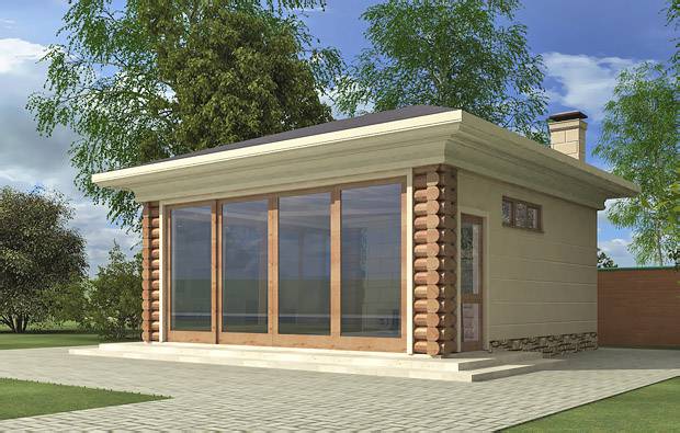 Площадь застройки летней кухни: 64,0 кв.м. Стиль фасадов: фахверк. Год проектирования: 2012Проект летней кухни 5 х 6 с поясом из планкена