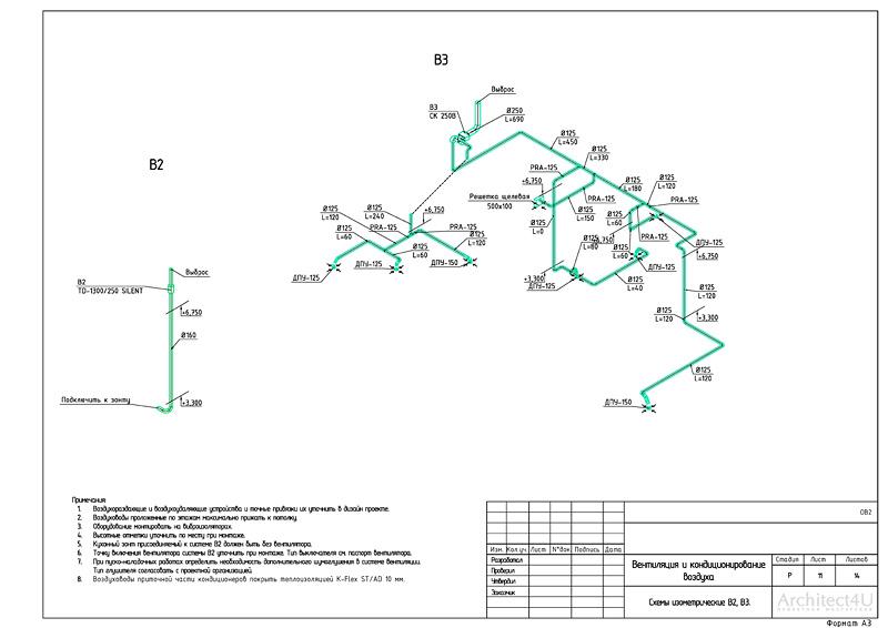 - Аксонометрические схемы систем вентиляции и кондиционирования