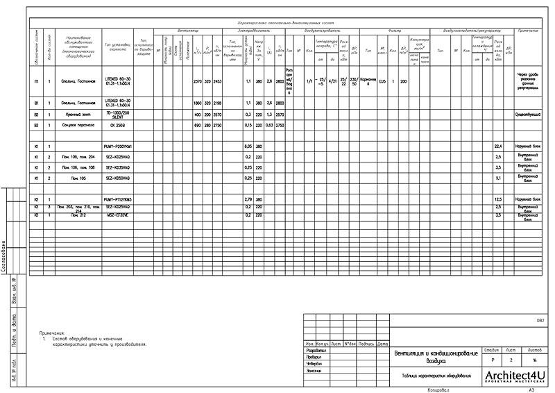 Любой качественный рабочий проект для монтажа системы вентиляции и кондиционирования должен иметь следующий обязательный состав чертежей и текстовых данных