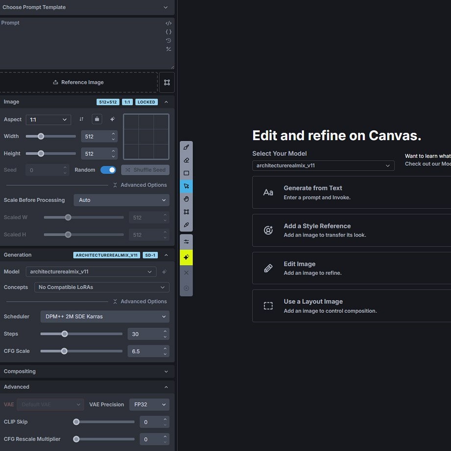 По этой причине архитектор почти никогда не работает с генерацией с нуля - если, конечно, его цель не коллекционирование эффектных картинок, а работа с реальным домом. Text-to-image - территория художников и концепт-артистов. Архитектурный режим - image-to-image с умеренным уровнем шума. Мы не просим нейросеть придумать новый дом, мы задаём ей профессиональный вопрос: как может выглядеть этот фасад при других материалах, иной глубине проёмов или изменённой пластике оболочки, не затрагивая сам объём здания.