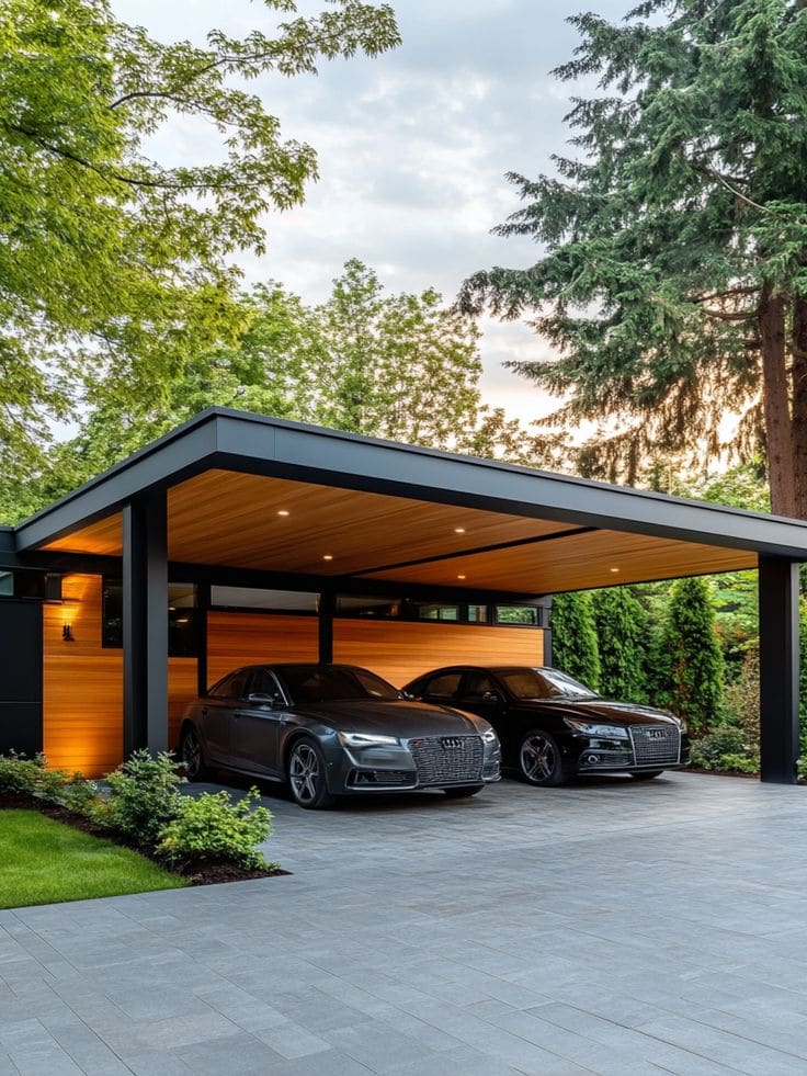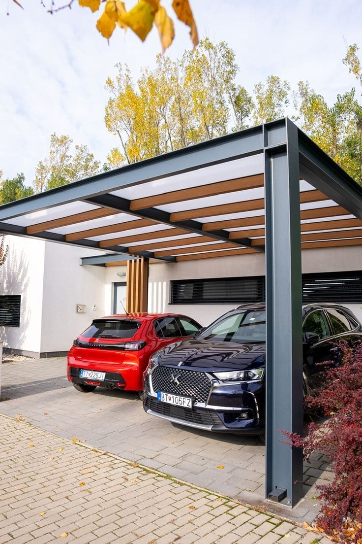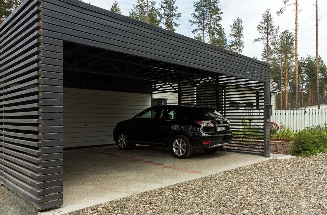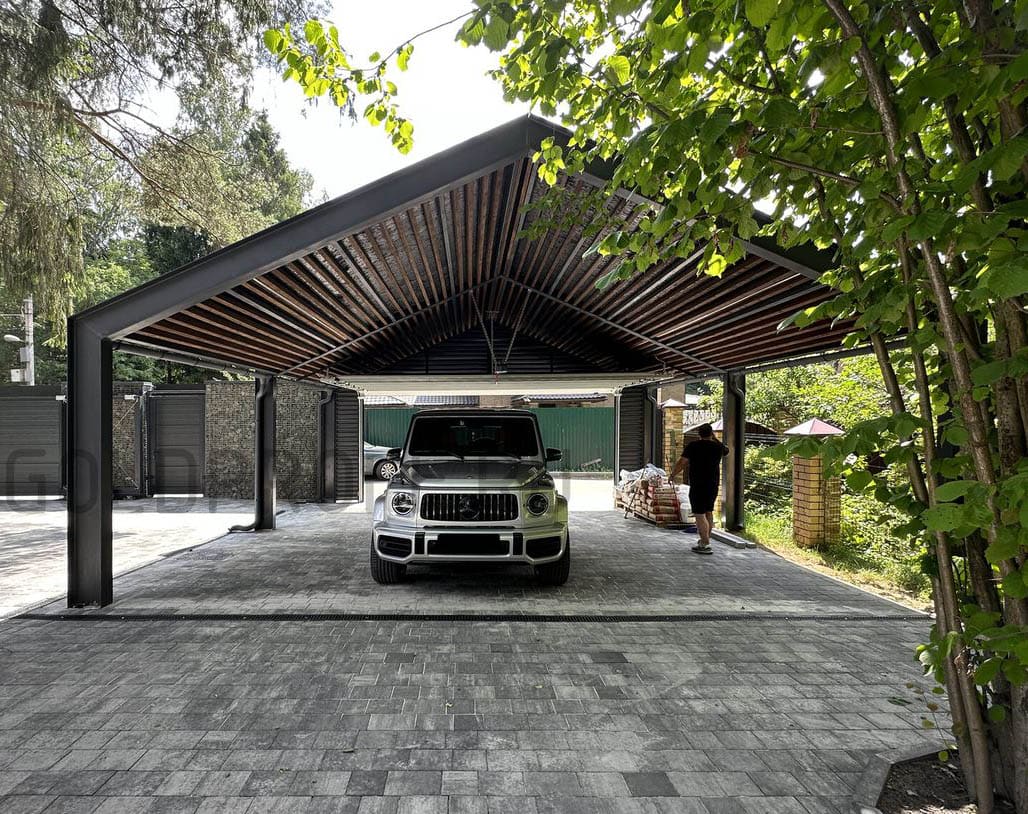 - Функциональное пространство: зону под навесом можно использовать не только для парковки, но и как укрытую площадку для хранения, мастерской или отдыха.