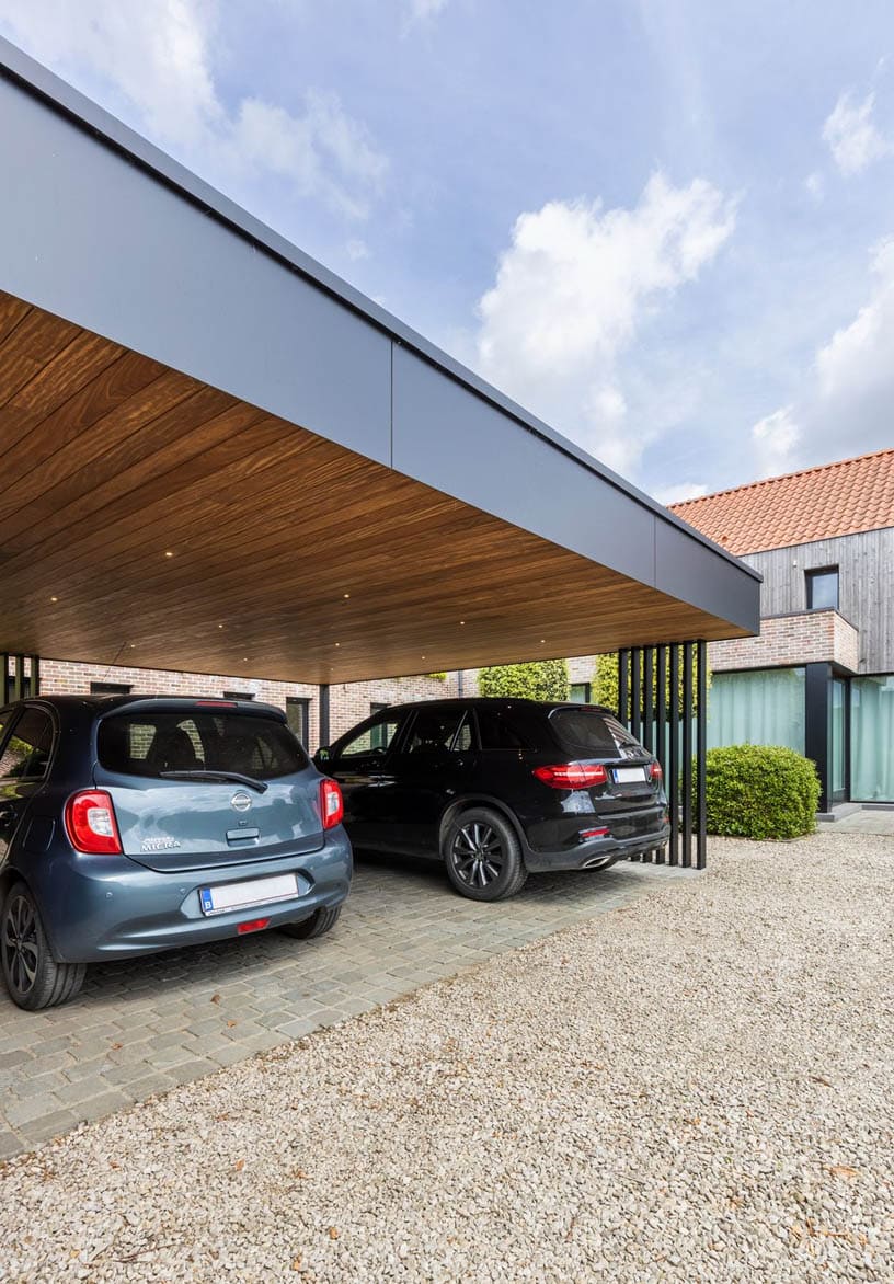 Мы разрабатываем проекты навесов для автомобилей, которые не только функциональны, но и эстетически связаны с архитектурой дома. Конструкция подбирается индивидуально: