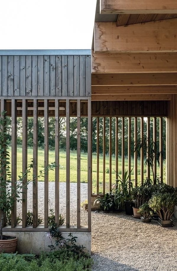 Особая ценность навеса заключается в том, что он может стать продолжением архитектуры дома. Важно, чтобы он гармонично сочетался с фасадом, материалами отделки и общей концепцией участка. Например, навесы в стиле хай-тек прекрасно смотрятся рядом с минималистичными зданиями, а деревянные конструкции с декоративными элементами идеально подойдут к коттеджам в стиле шале.