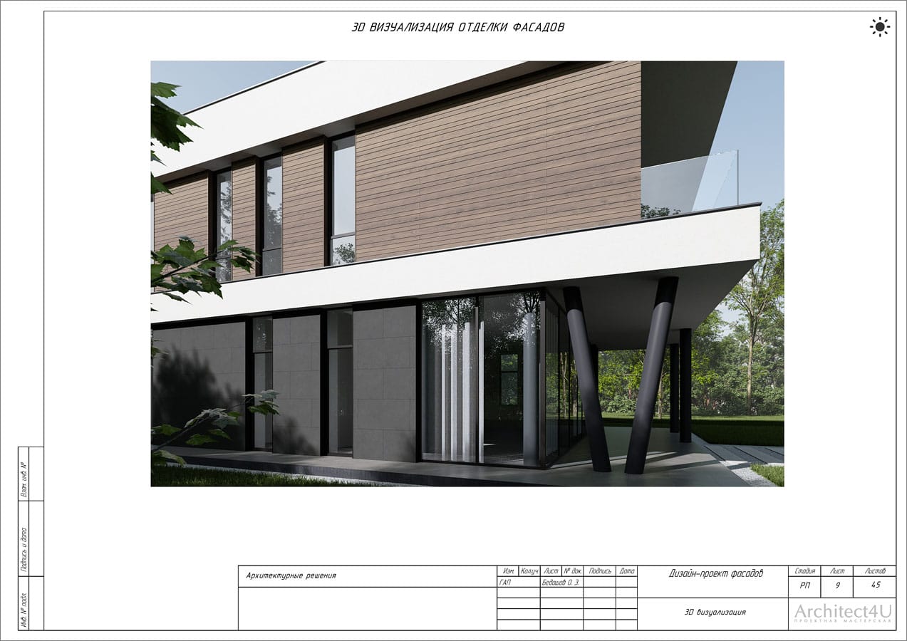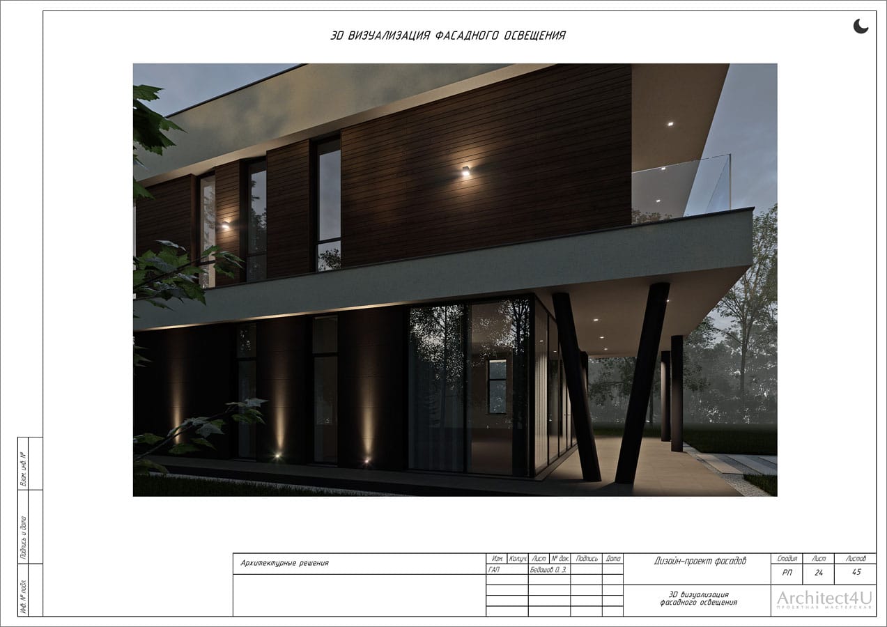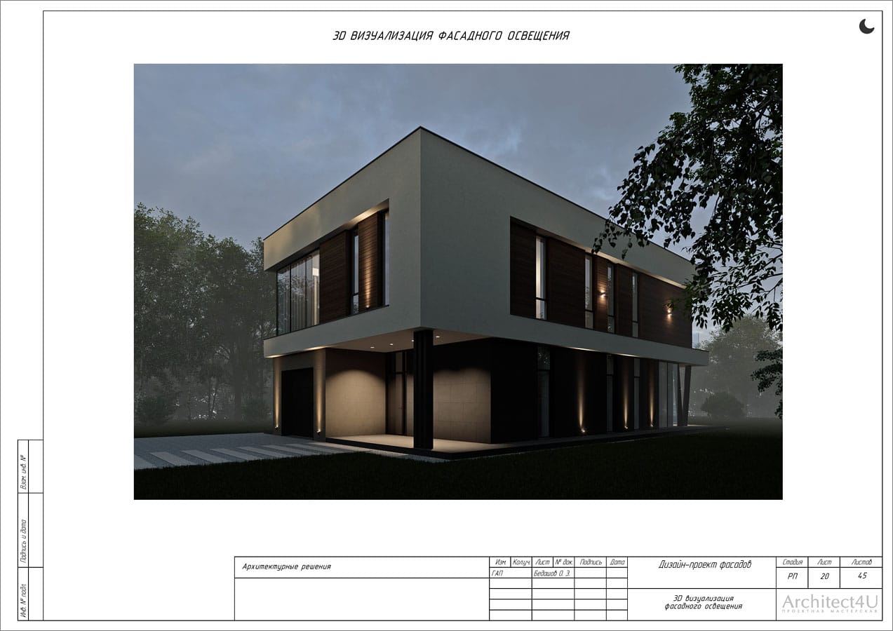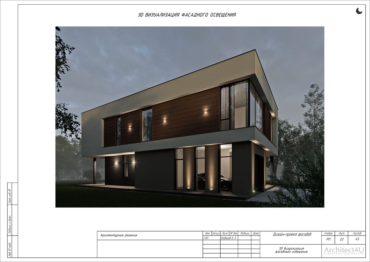 Рабочий проект фасадов дома с подсветкой