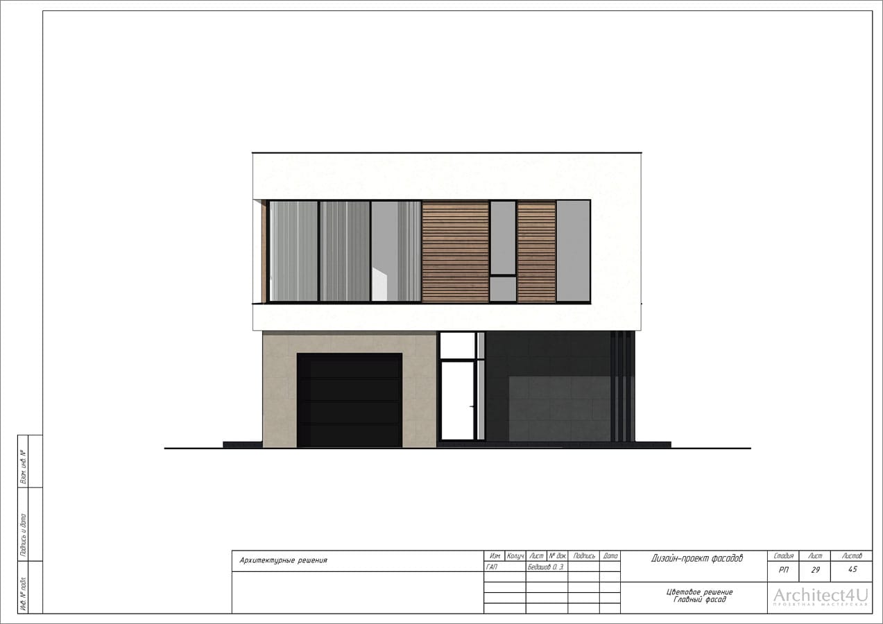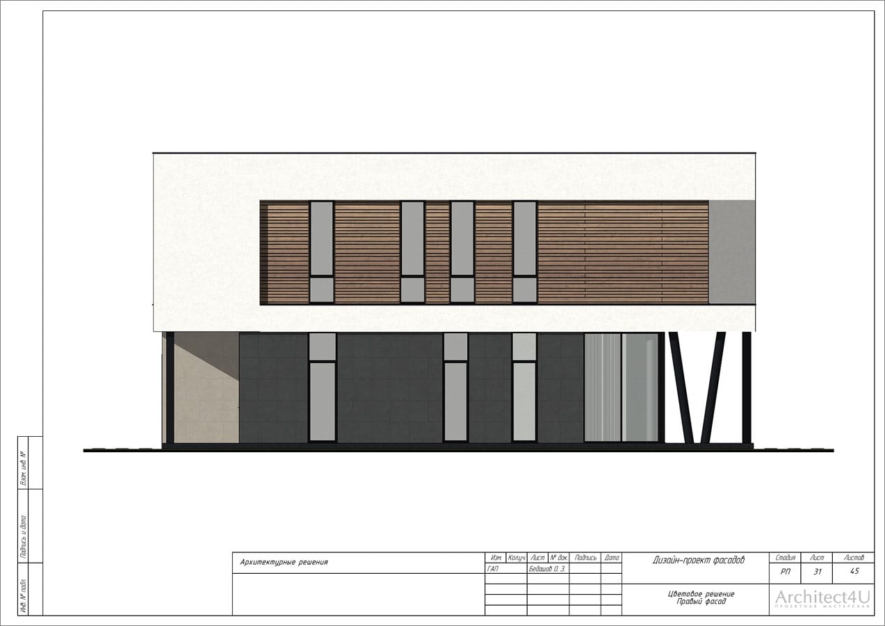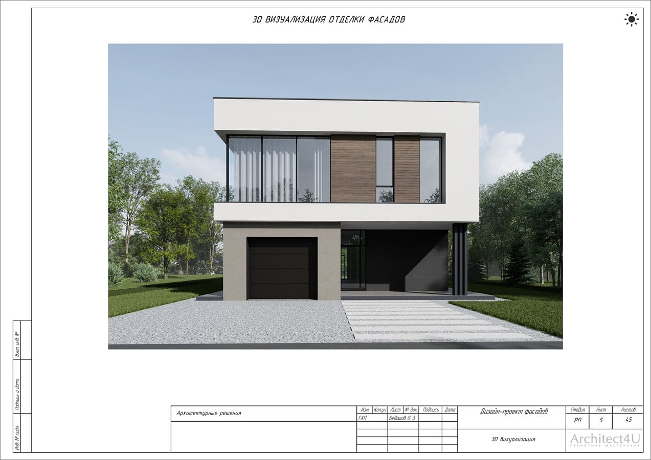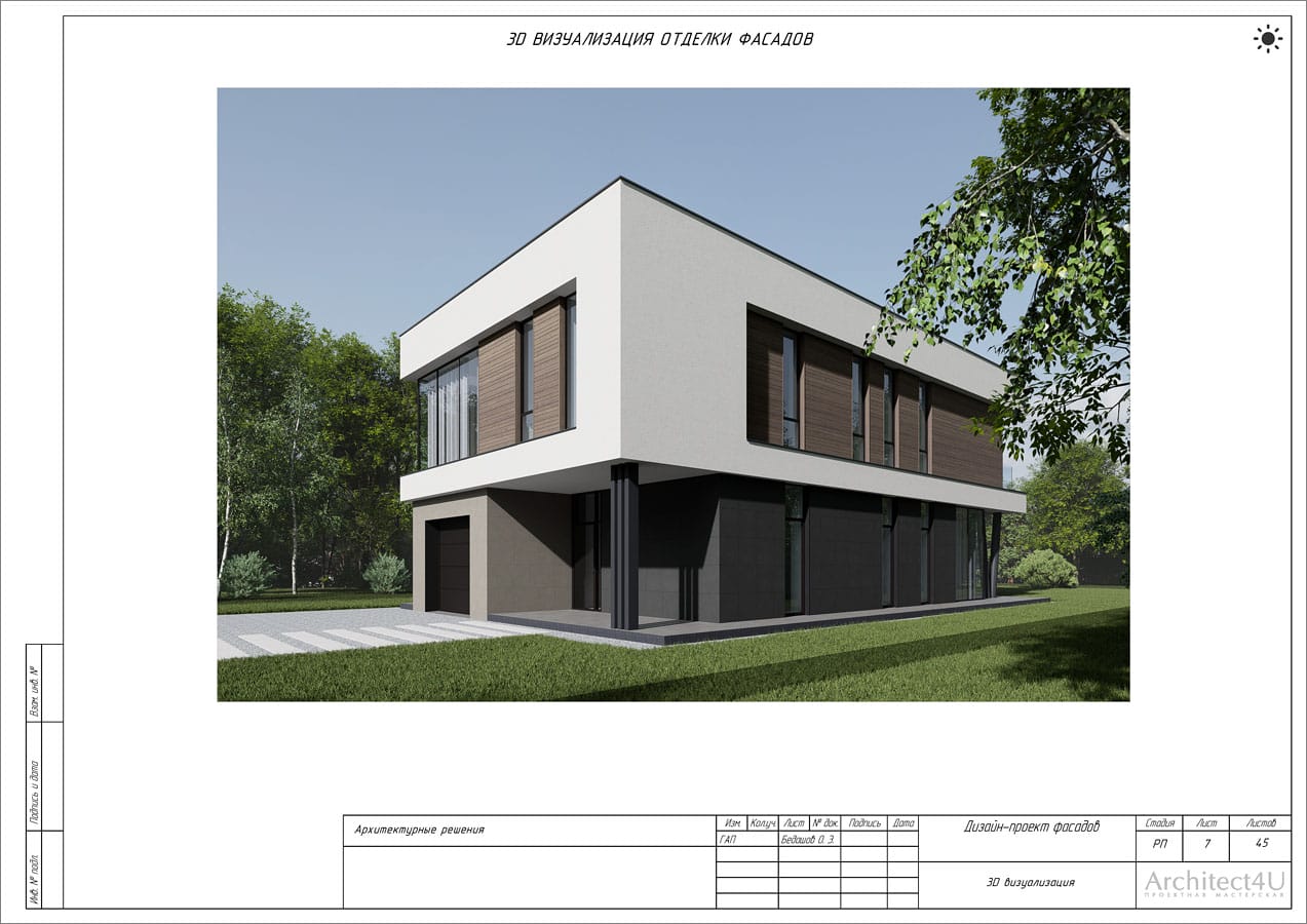 Рабочий проект фасадов дома с подсветкой