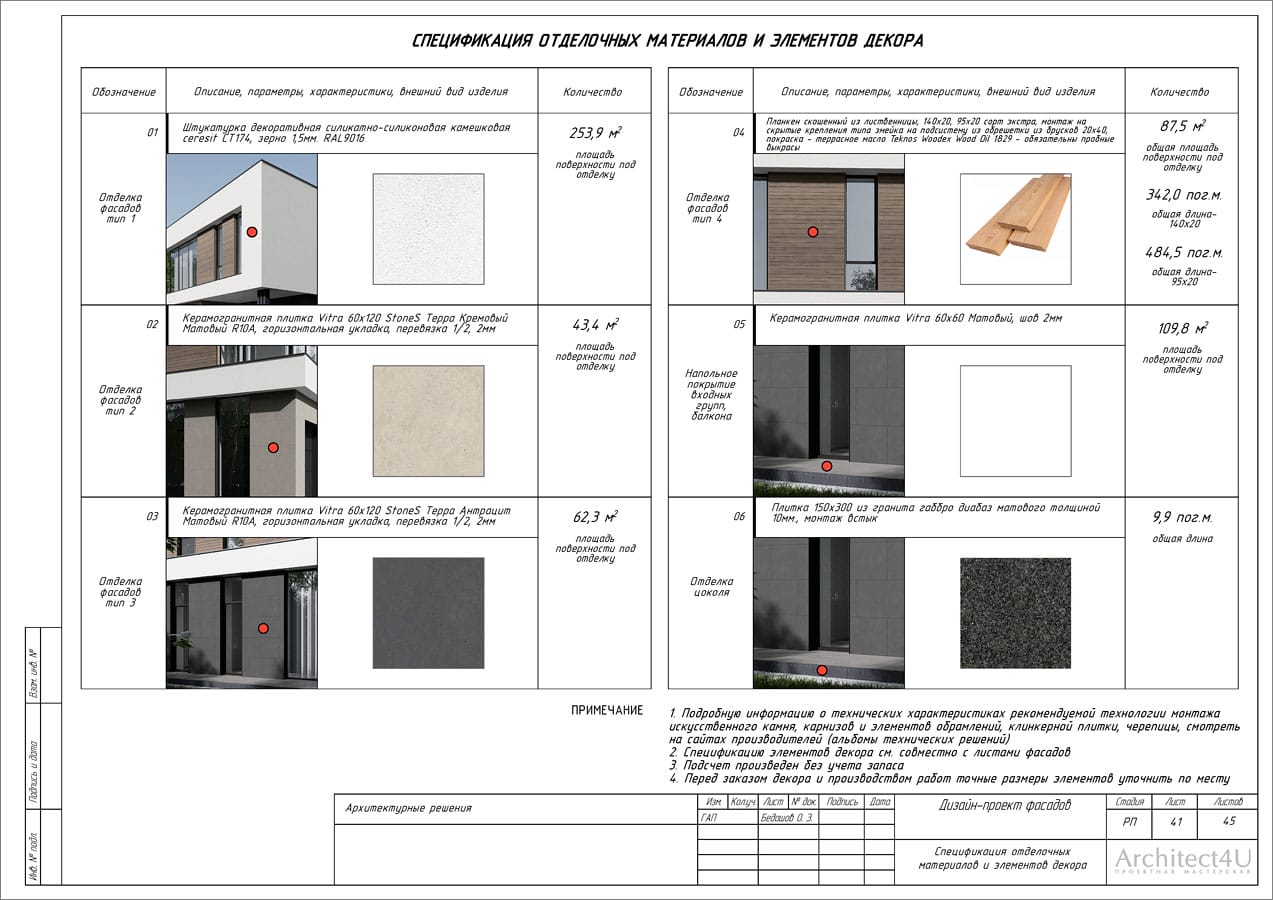 - проект необходимый для закупки фасадных материалов и выполнения строительно-отделочных работ, который содержит все необходимые чертежи и расчеты