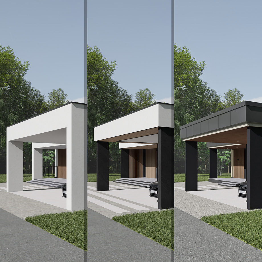 В рамках услуги мы индивидуально разрабатываем два-три концептуальных варианта фасадов с реалистичными материалами и цветами, включая дневные и вечерние ракурсы с подсветкой в качестве допов. Вы видите, как ваш дом может выглядеть ещё до начала отделочных работ, и сразу понимаете, какой вариант дизайна вам ближе.