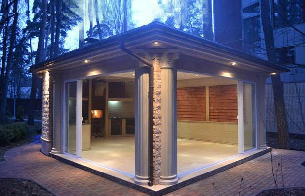 Площадь застройки летней кухни: 38,0 кв.м. Стиль фасадов: классический. Год проектирования: 2018Летняя кухня 5 x 4 в Барвихе