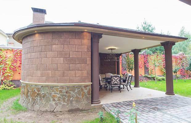 Площадь застройки летней кухни: 25,2 кв.м. Стиль фасадов: классический. Год проектирования: 2013Летняя кухня 8 х 4.2 полукругом