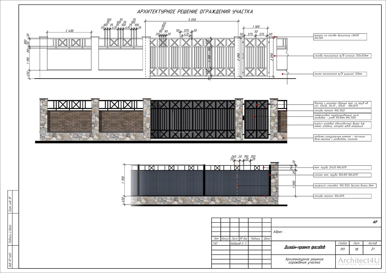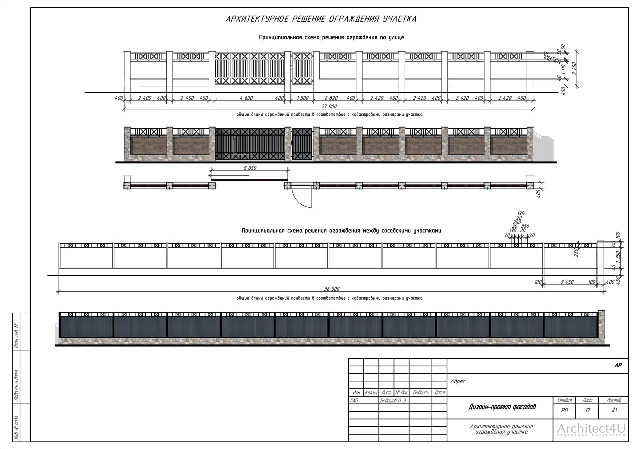 - прнципиальная схема архитектурного решения ограждения - фасады, развертки